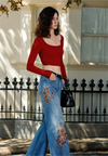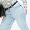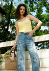 Flora Mid Rise Straight Cuffed Denim Jeans