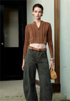Mid Rise Wide Leg Denim Jeans With Raw Hem