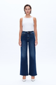 Ultra-high-waisted wide-leg jeans crafted from vintage denim fabric, showcasing bold whiskering and distinctive distressed details. These jeans offer a unique, vintage-inspired look that effortlessly combines style and comfort.