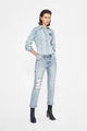 High rise distressed jeans designed to enhance your curves with a flattering butt-lifting fit and modern raw hem details.