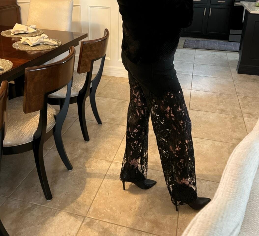 Embroidery Wide Leg Lace Jeans With Rhinestone