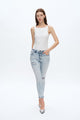 Crafted from stretchy fabric, our high-waisted skinny jeans with rolled cuffs and worn-out pocket openings present a distressed look, detailed with the exclusive BAYEAS logo hardware buttons.