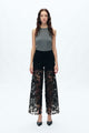 Cropped high-waisted wide-leg jeans in medium stretch denim. Designed with a classic 5-pocket silhouette, frayed pocket openings, zip fly closure, symmetrical whiskering, hand sanding, raw hem, and a dramatic side slit.