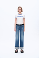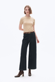 Mid rise wide leg pants, dyed and rendered in sky blue. The front has regular five pockets, loose version, with some elasticity.