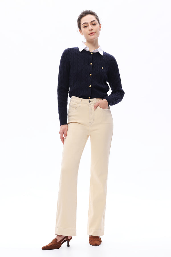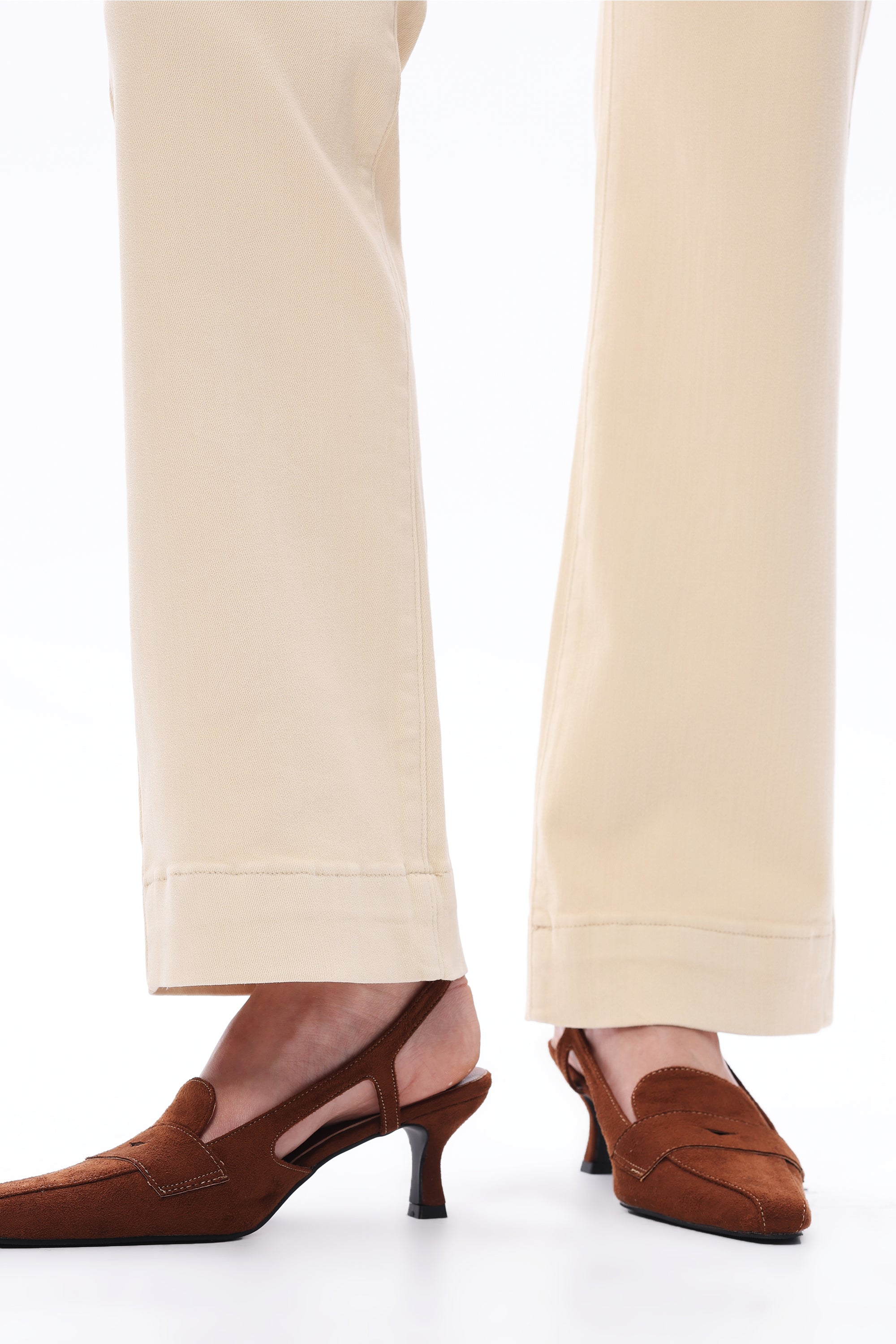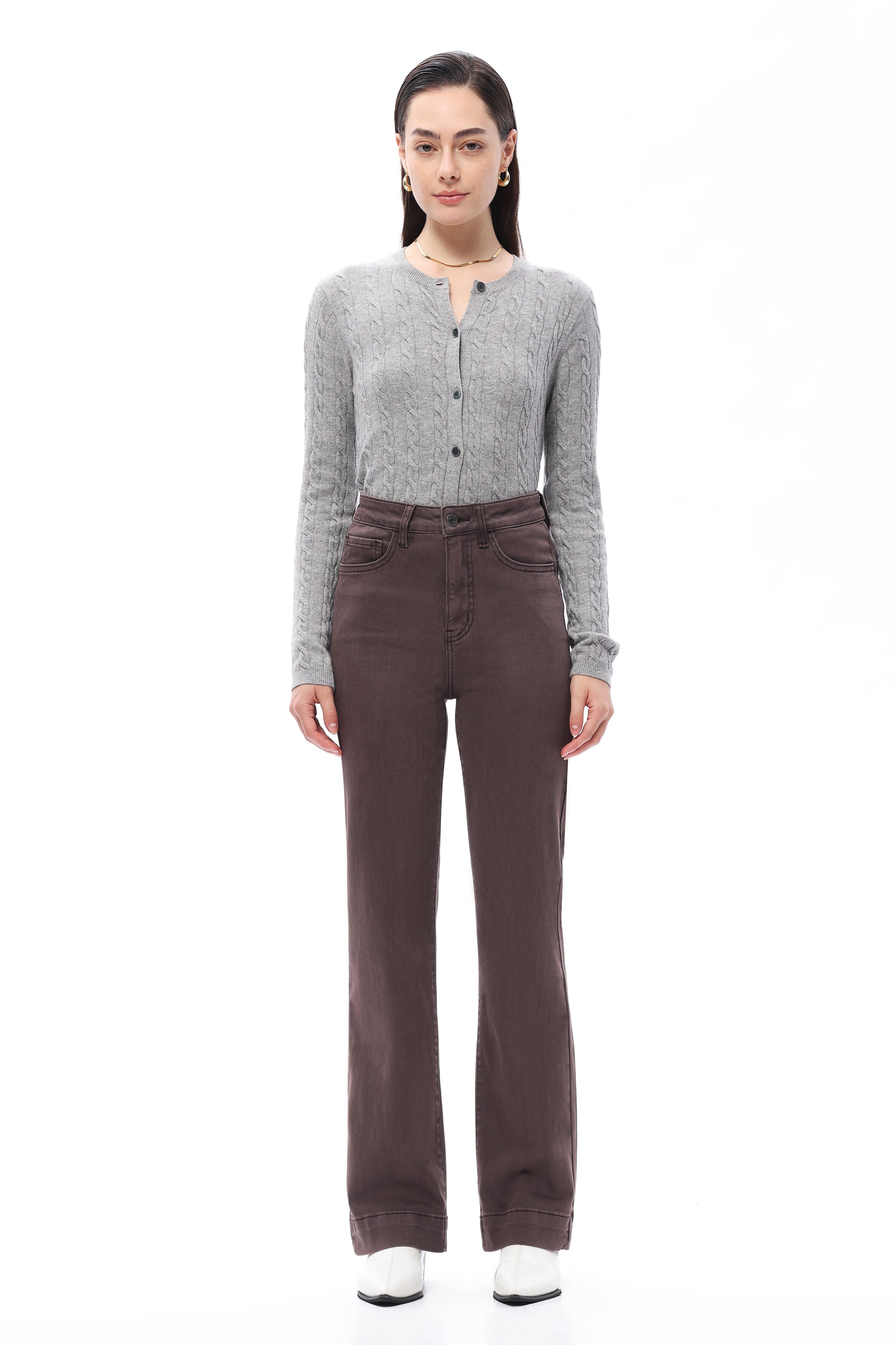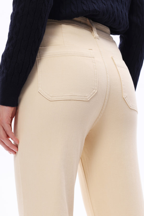 Super high rise stretch pants with tummy control pocket bag and back pockets ,Button closure and zip fly, full length with bootcut silhouette.