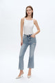 Classic straight leg denim with a flattering high rise fit and soft light wash, perfect for effortless everyday wear and timeless style.