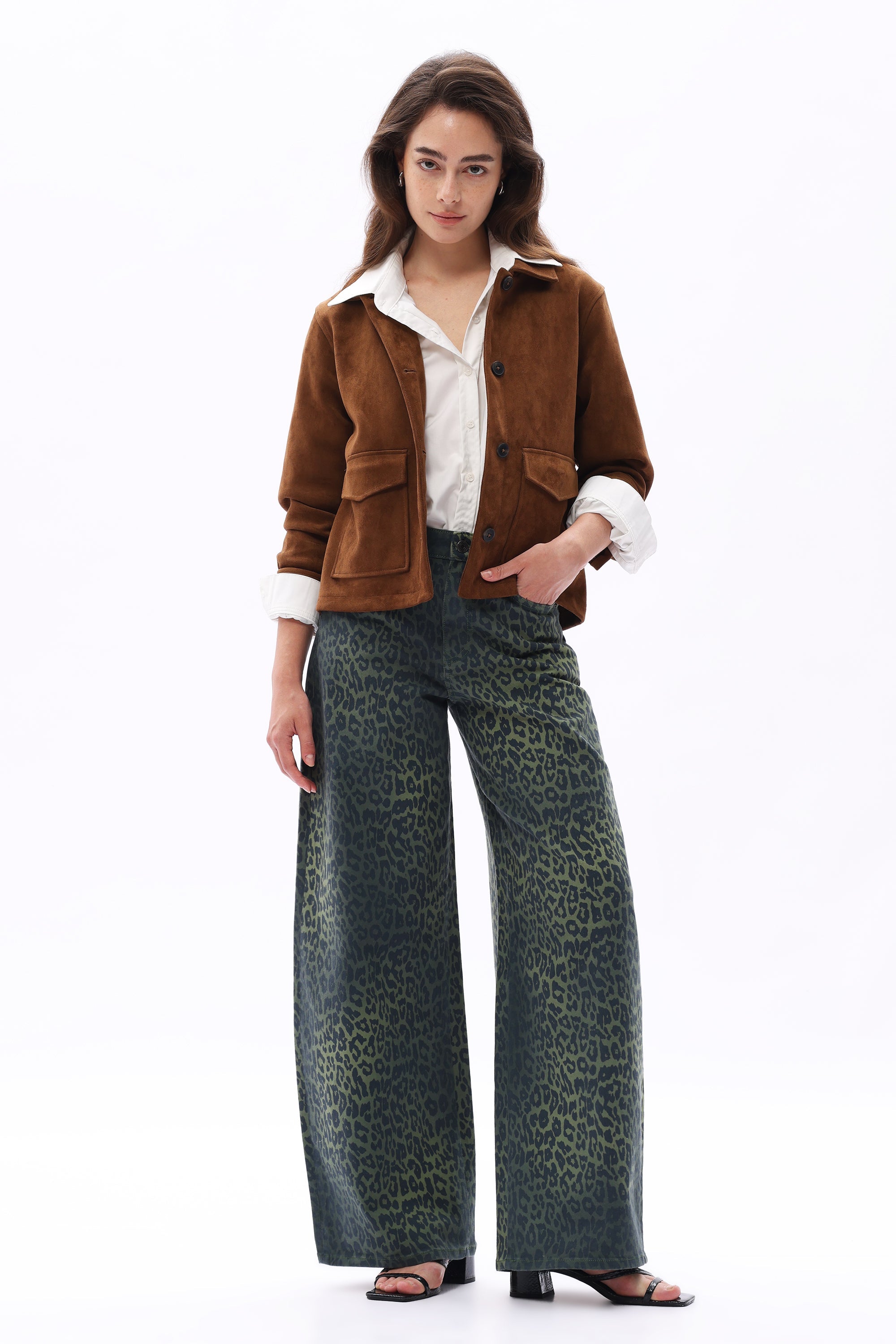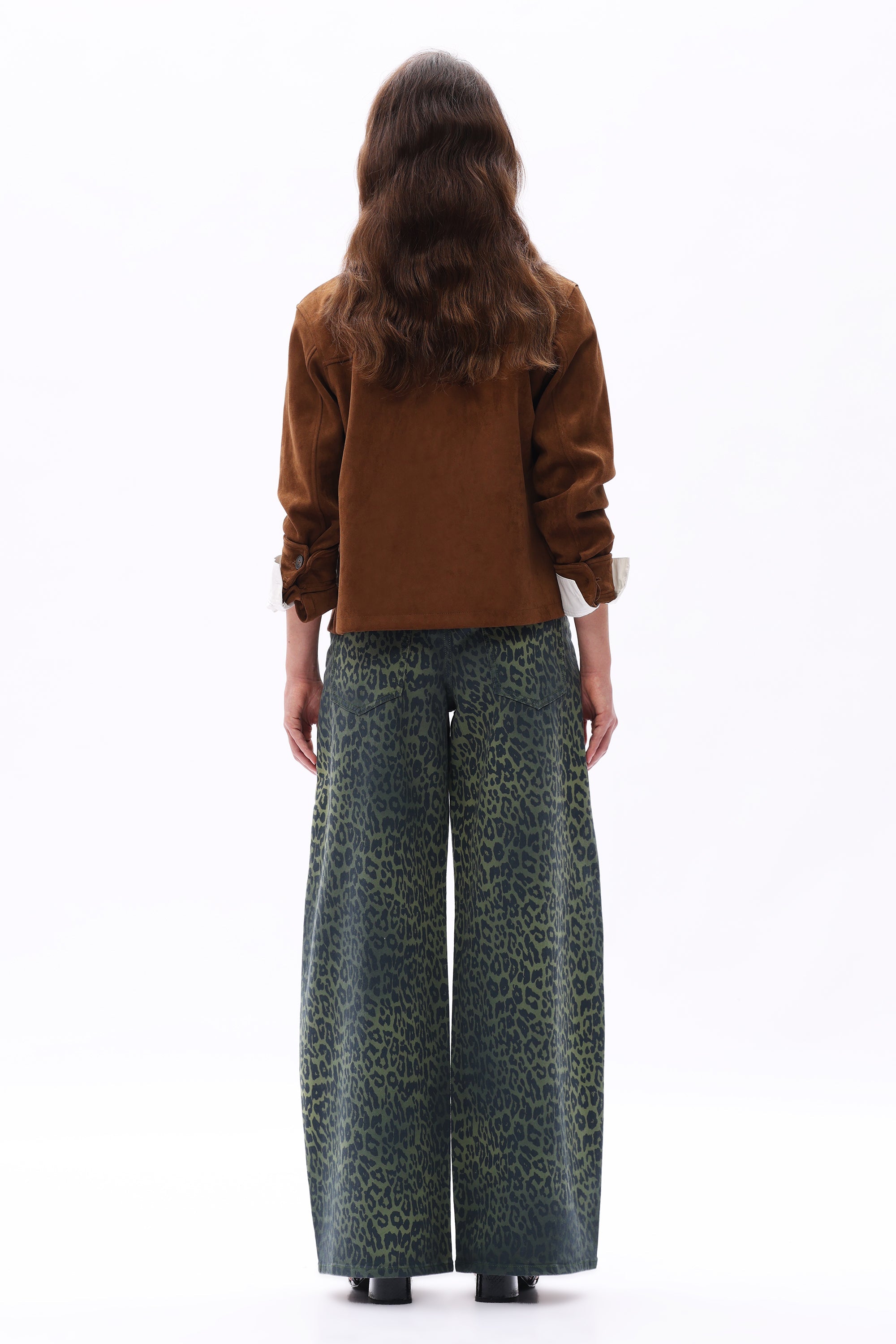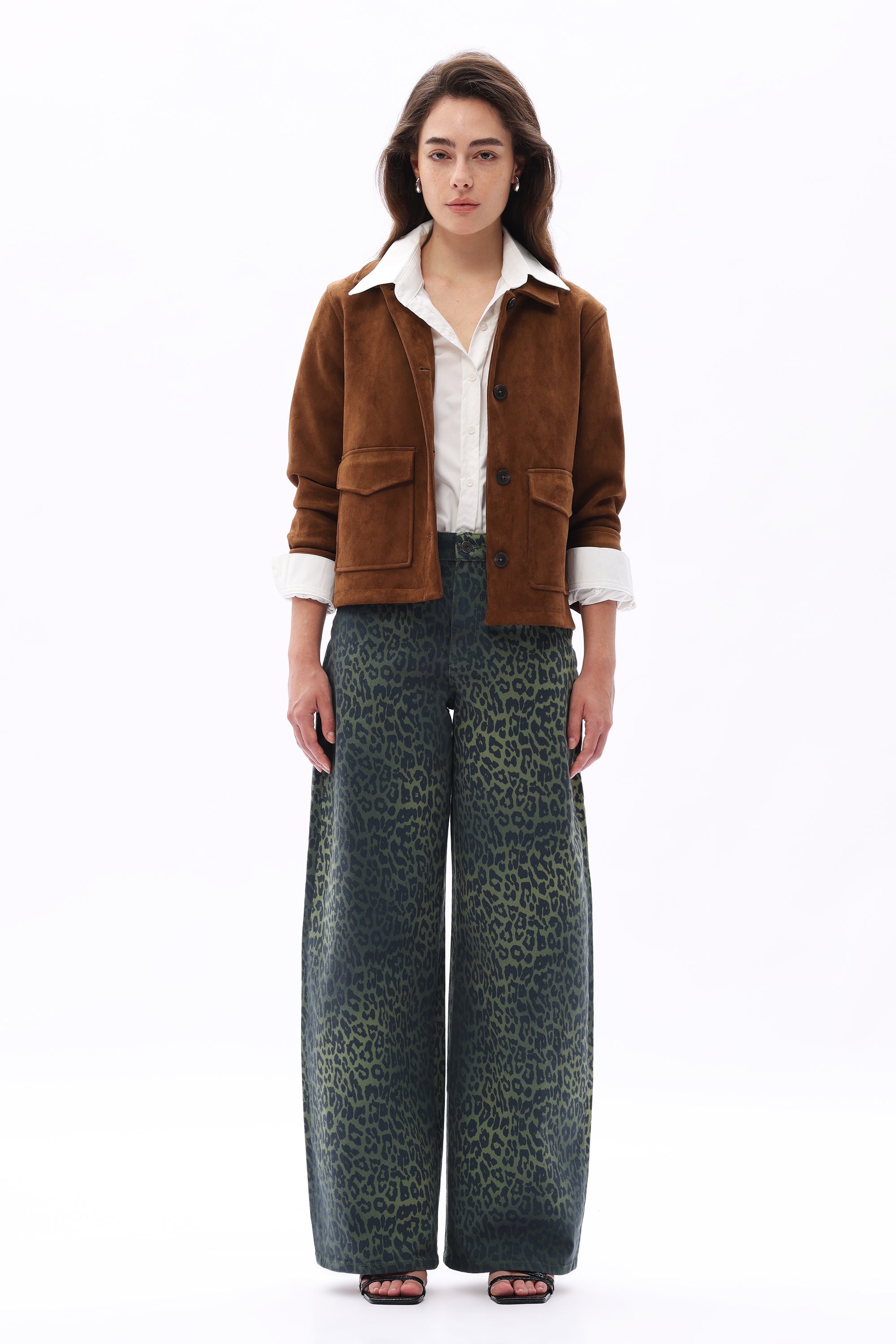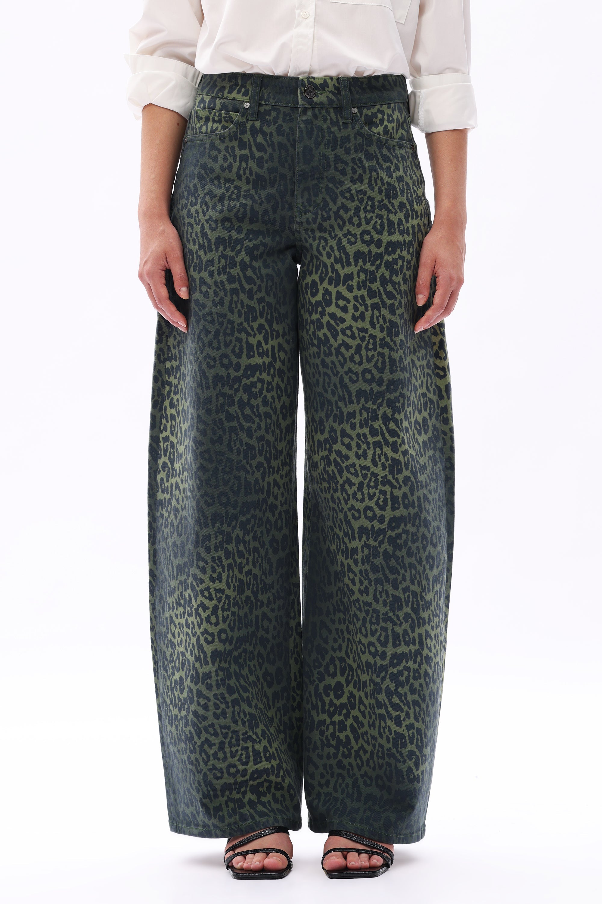 These unique high rise leopard print barrel pants blend bold design with eco-conscious principles. Featuring innovative COOLTRANS? technology, they significantly reduce water, save energy, and minimize pollution. With their striking leopard print pattern and relaxed barrel silhouette, these pants offer an exceptional and sustainable fashion statement.