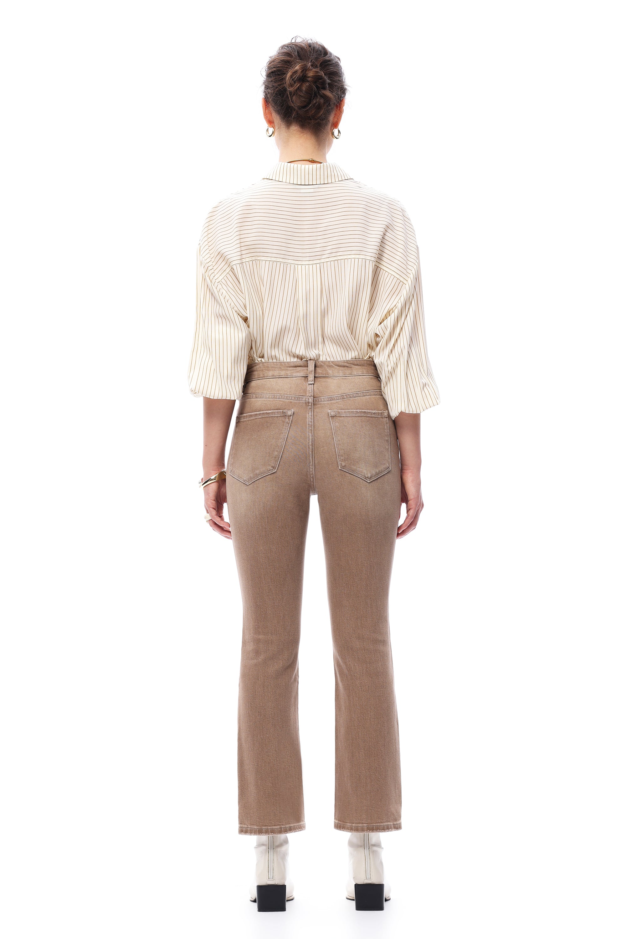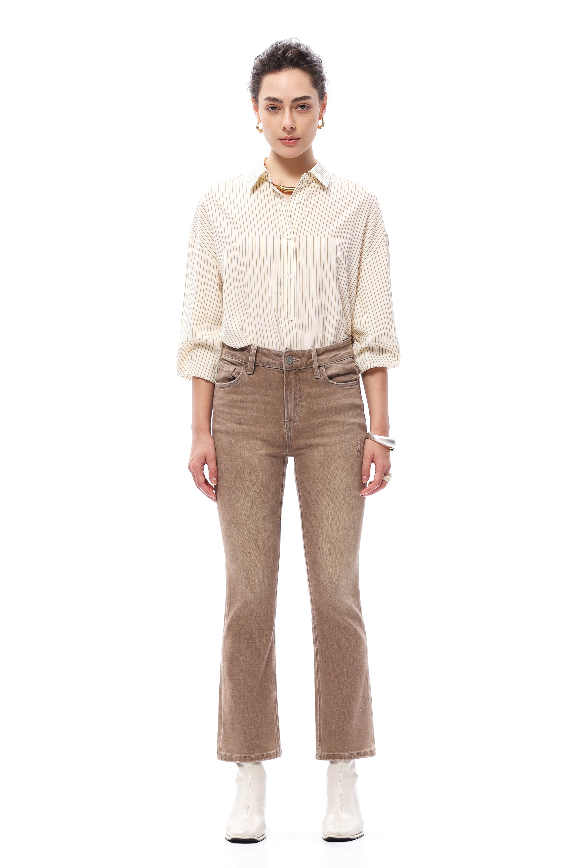 Modern cropped flare jeans with a flattering high-rise fit, designed for versatile styling and everyday comfort.