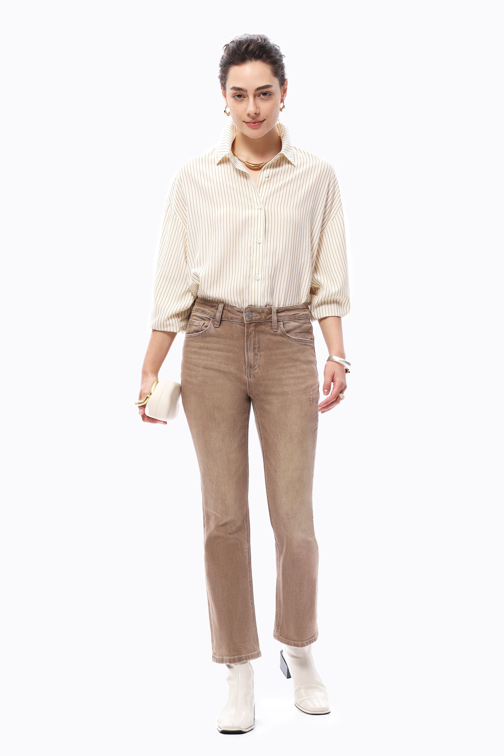 Modern cropped flare jeans with a flattering high-rise fit, designed for versatile styling and everyday comfort.