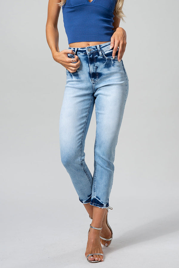Find your perfect fit with our high-rise Mom jeans. The comfortable, vintage-inspired silhouette and eye-catching acid wash make them a versatile and fashionable addition to your wardrobe.