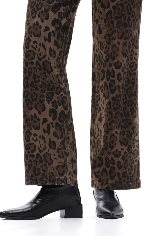 High rise relaxed straight pants with a classic five-pocket design and a straight silhouette. The coffee-colored leopard print will be a standout element for the winter season.