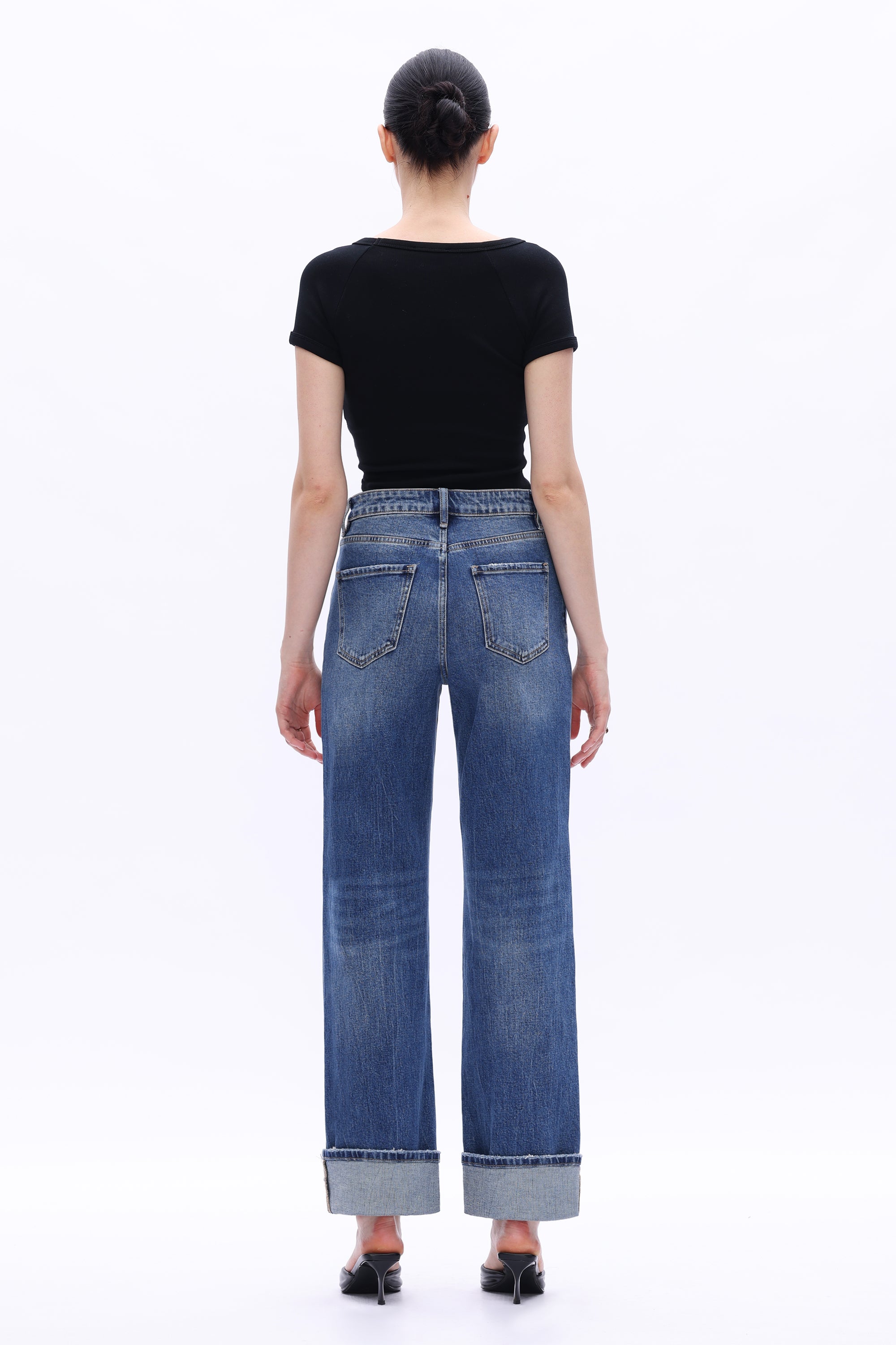 This high-rise, straight-leg jeans offer a flattering fit and timeless style. Made from premium, comfortable denim, It's a wardrobe essential for a sleek or casual look.