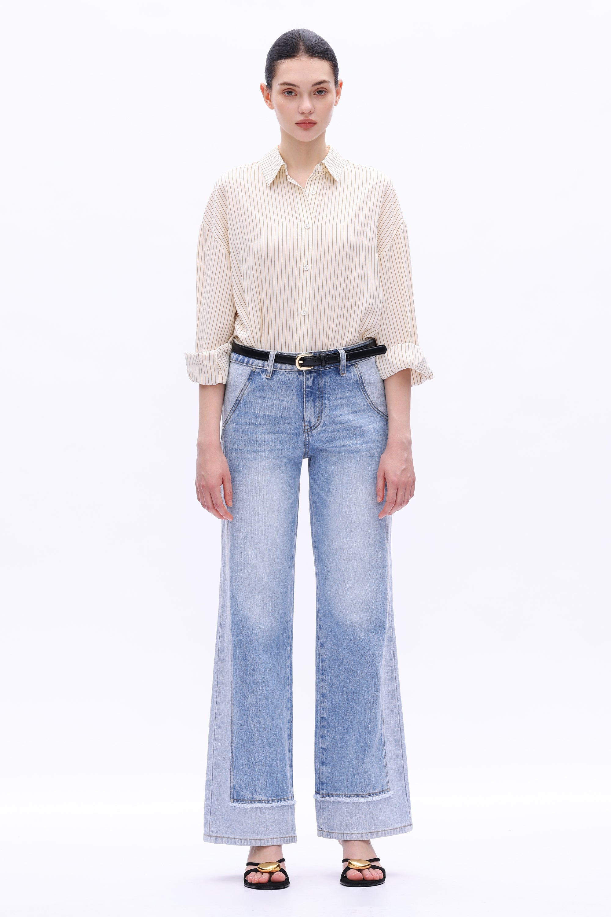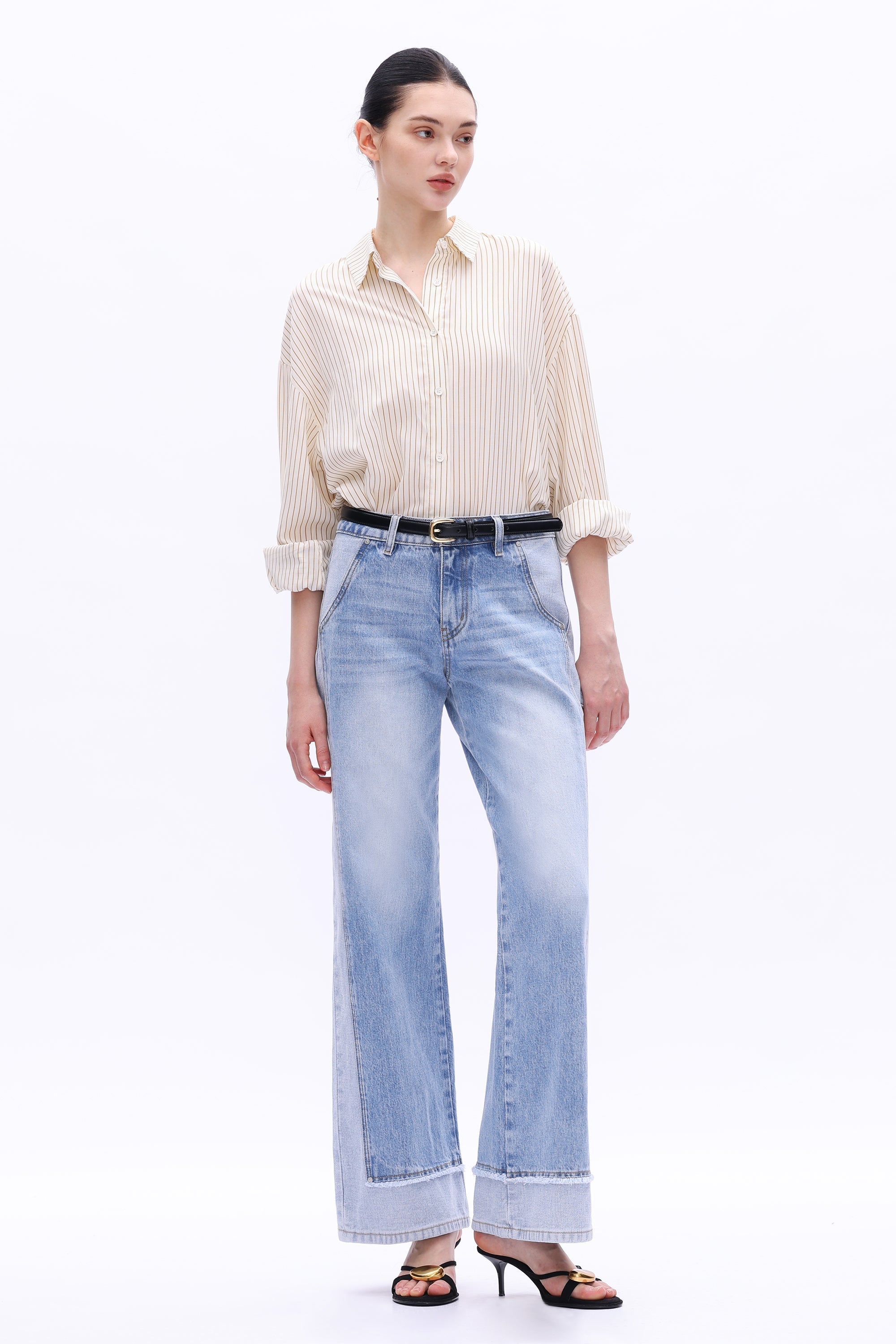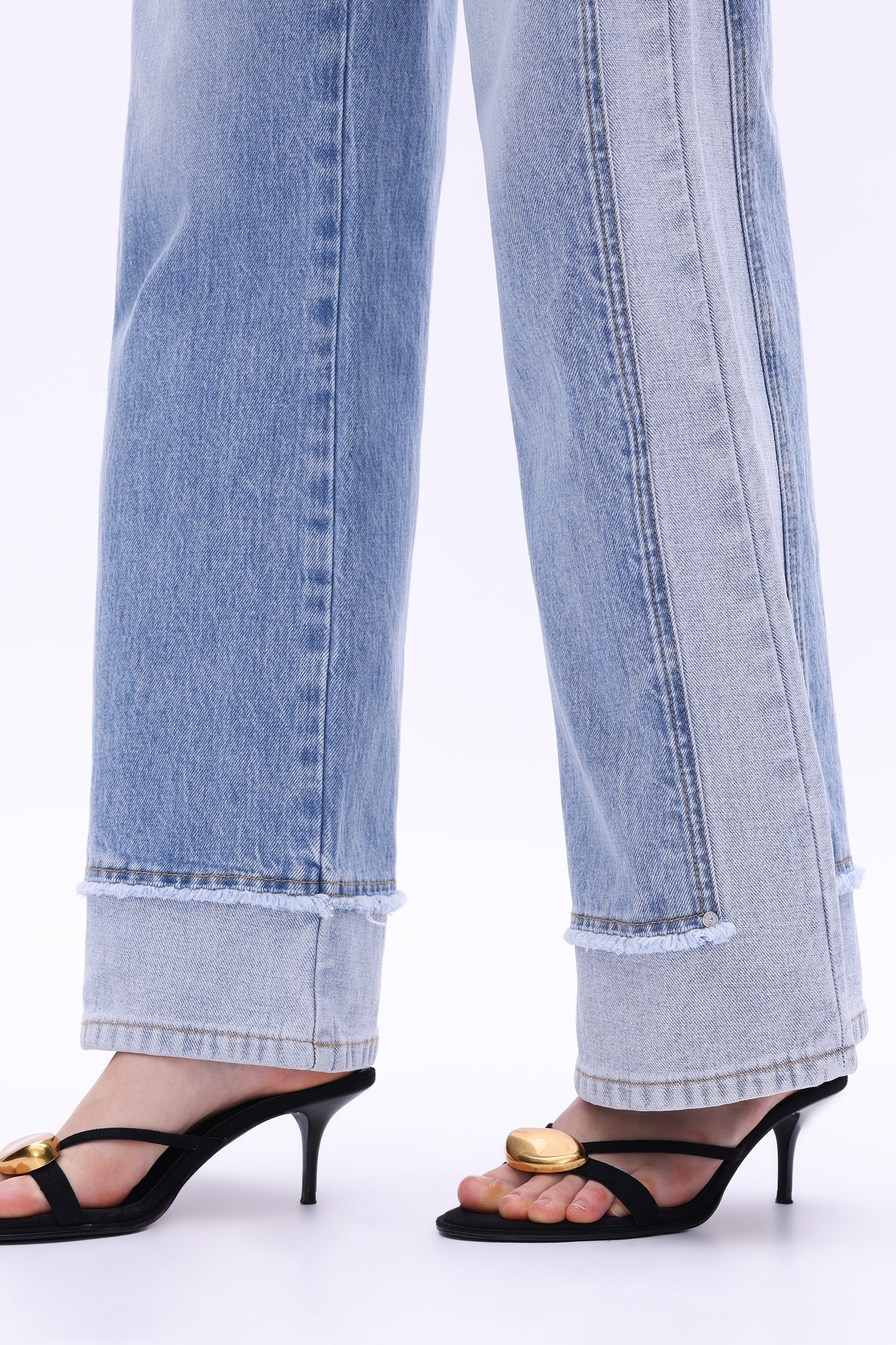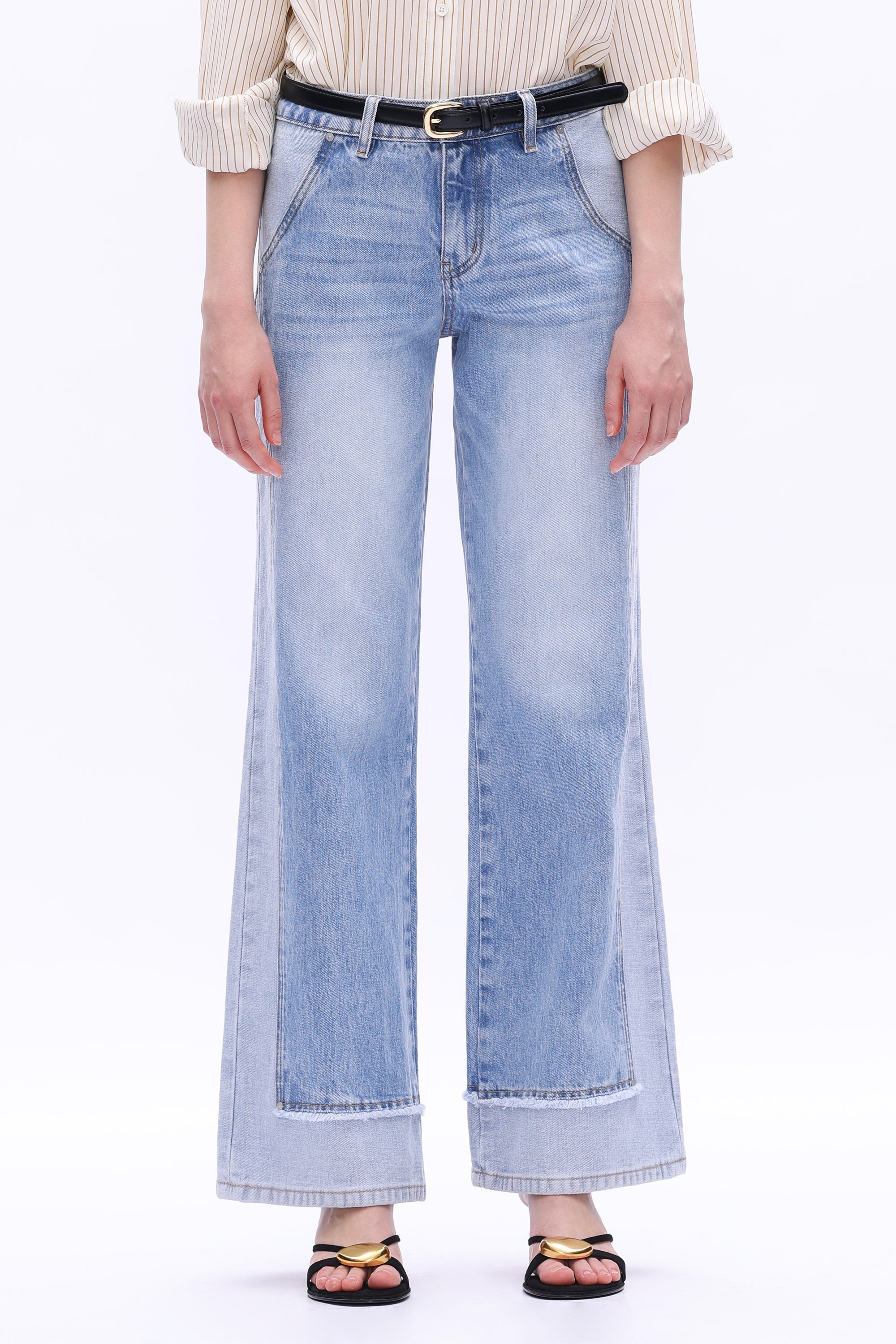Jeremy Mid-Rise Two-Tones Wide Leg Jeans