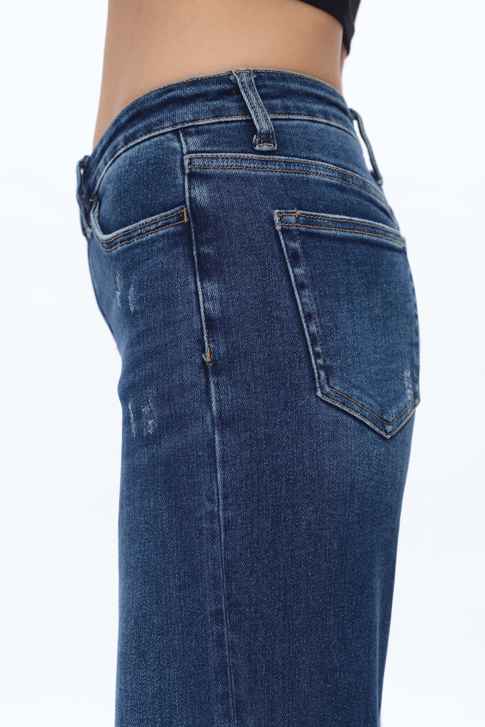 Low Cut Wide Leg Crop Straight Denim Jeans