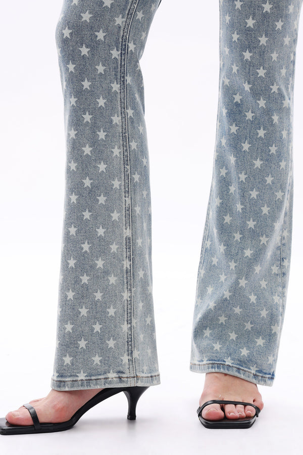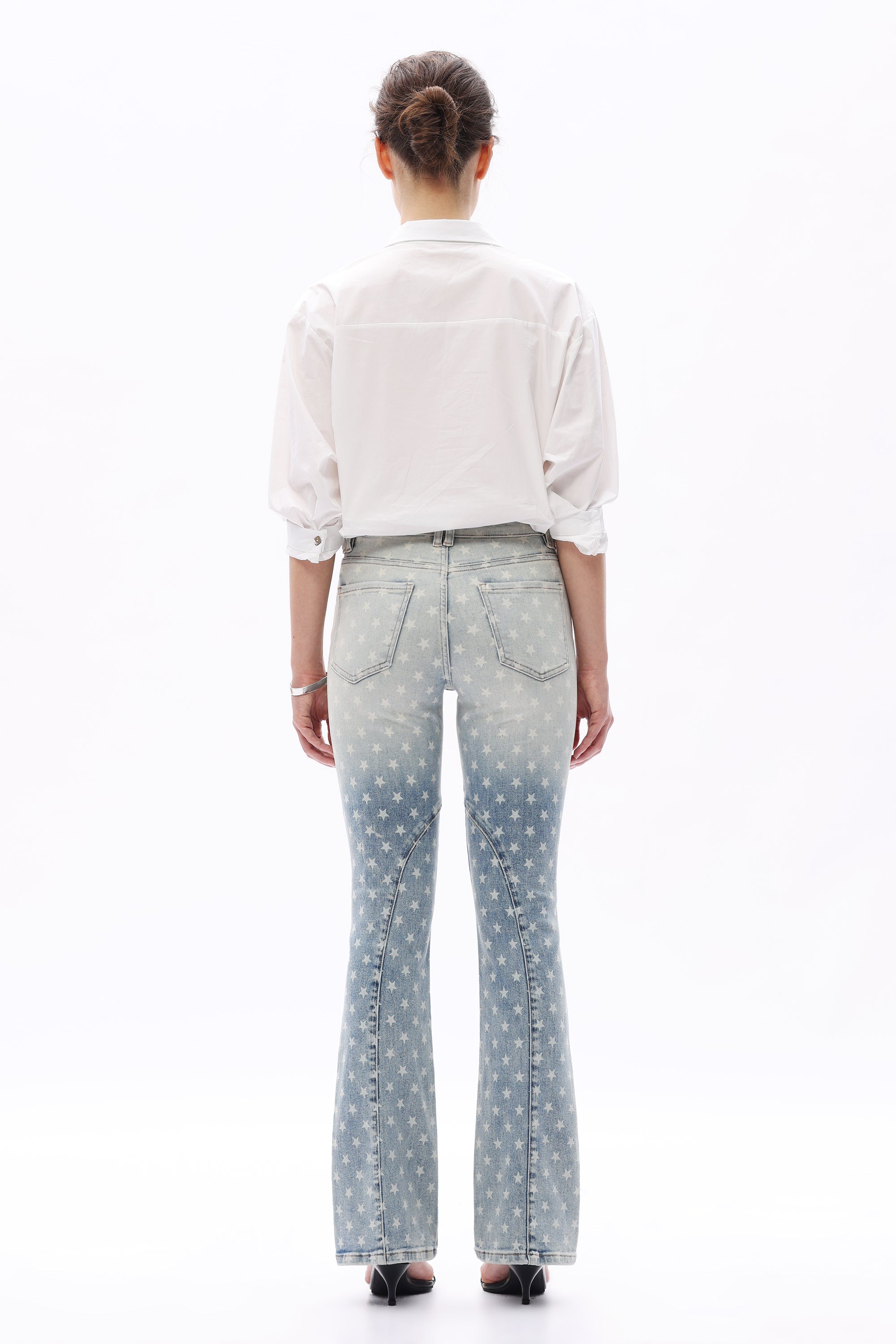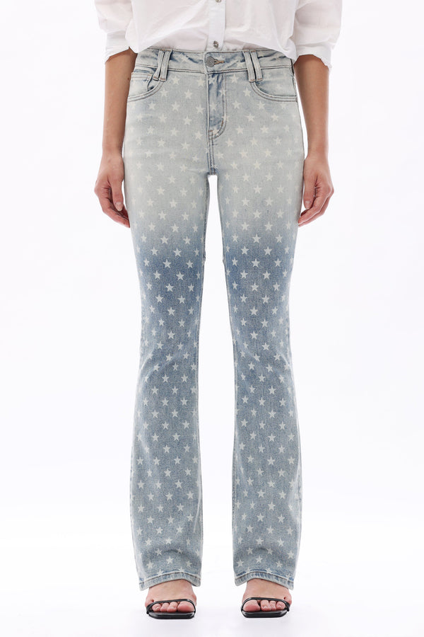 These mid-rise bootcut jeans feature a unique all-over star print with a distinct gradient effect, fading from the hem up to the waist.