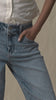 Mid rise wide leg jeans, embroidered style, made of low-stretch denim fabric, with zipper closure.