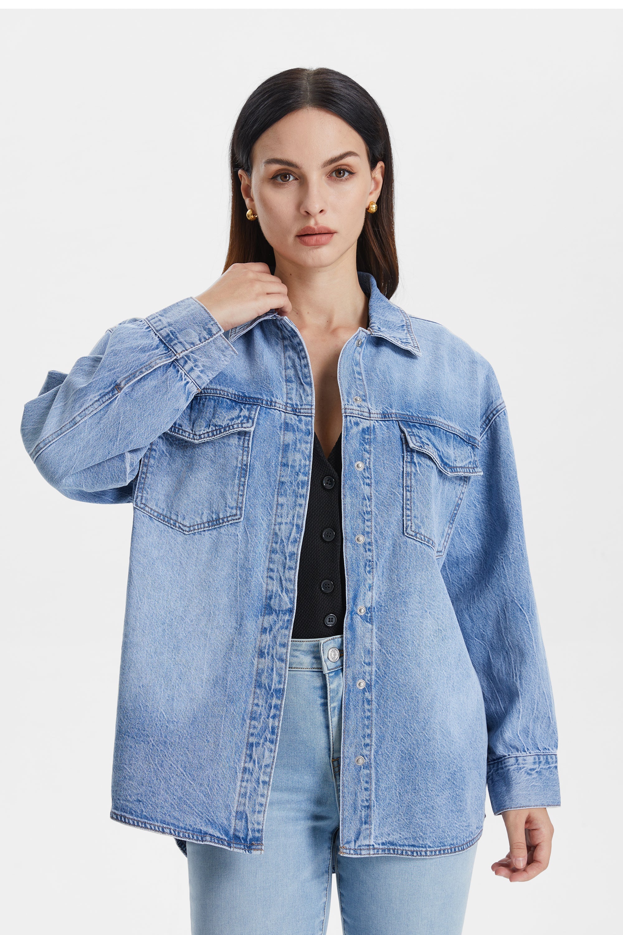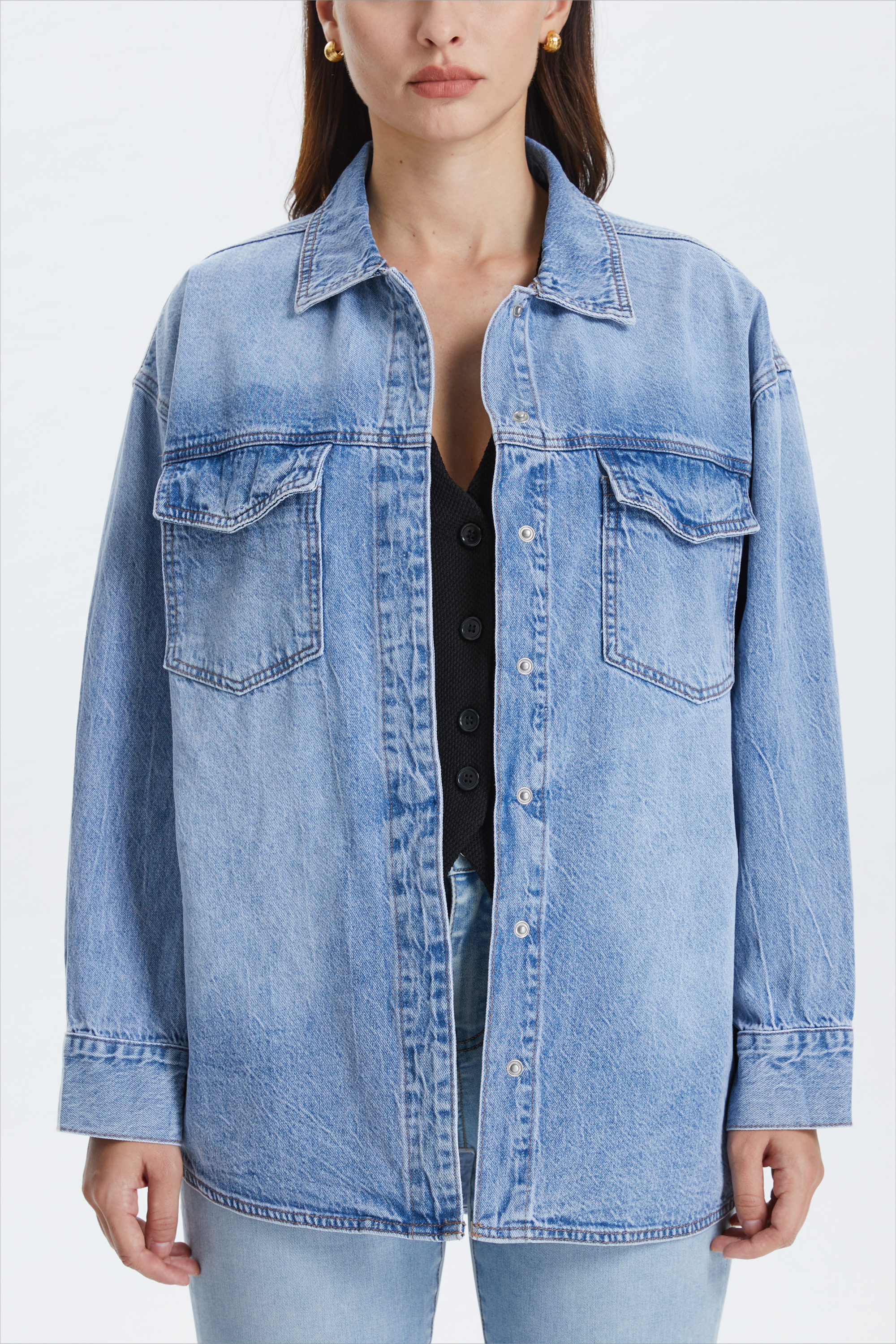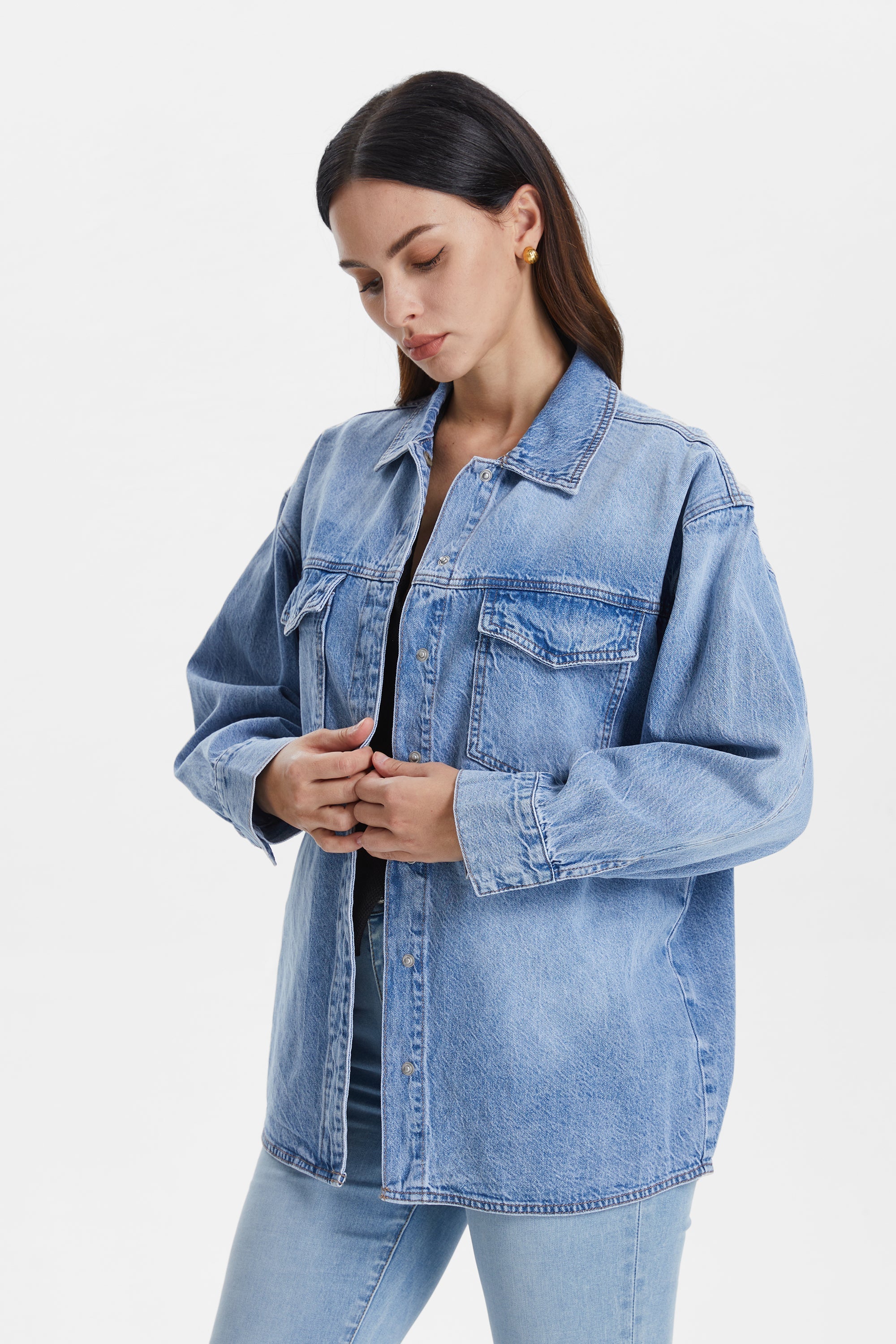 Oversized Denim Shirt Jacket with Faded Wash